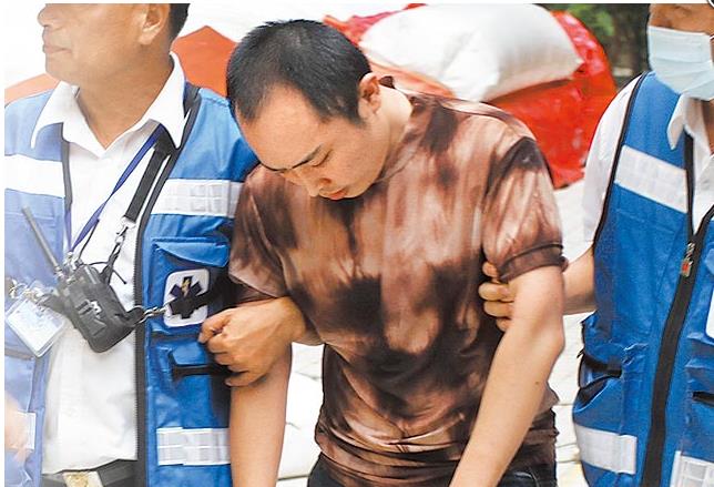 李明哲去年7月曾到死者梁雪梅居住的大楼闹自杀,被警方带离。(图片来自台媒)