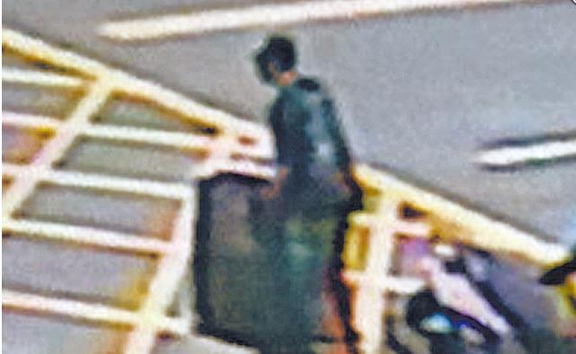 昨午12时许,李明哲推着装尸行李箱,从死者住处离开过马路时,被监视器拍下。(图片来自台媒)