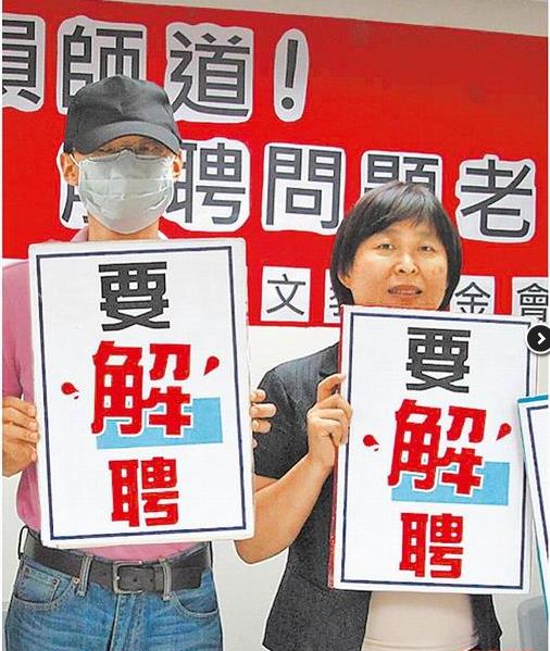 人本昨陪同学生家长(左)出面,指控廖师不当管教,要求立即解聘。(图片来自台媒)