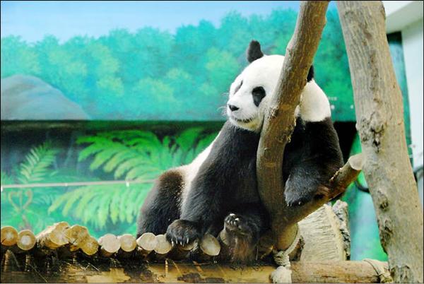 大熊猫圆圆出现嗜睡、胃口差、乳头肿胀等疑似怀孕迹象,园方为求慎重起见,昨天起不定期暂停见客。(图片由台北动物园提供)