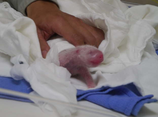 小熊猫宝宝眼睛尚未张开,有如人类的新生儿。(图片来自台媒)