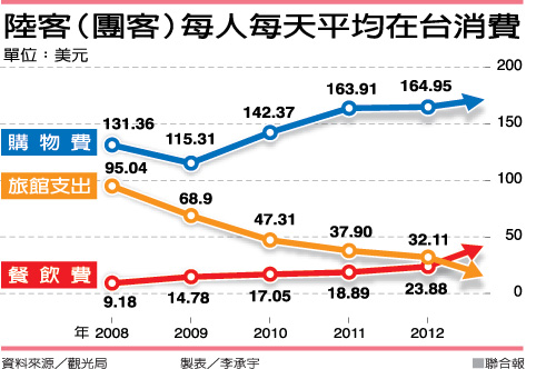 陆客(团客)每人每天平均在台消费。图片来源:台湾《联合报》