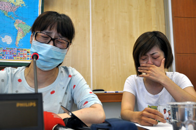 台湾“特宏兴368号”海上喋血,渔船船长与轮机长疑遭印尼渔工杀害。船长陈德生的两名女儿27日在记者会中难过落泪。(来源:台湾“今日新闻网”)