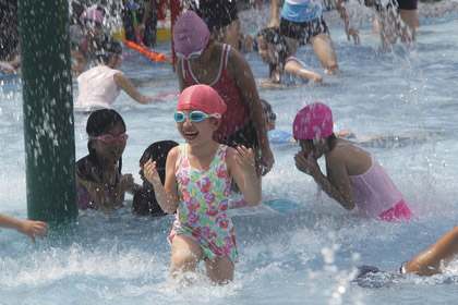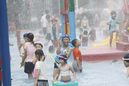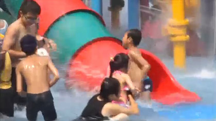 台北市中午出现今夏最高温,台北自来水源区挤满戏水民众。(图片取自台湾媒体)