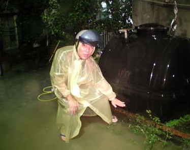 陈姓里民表示积水最深达到膝盖高度。(图片来自台媒)