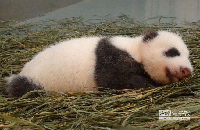 熊猫宝宝“圆仔”在台风夜一点都不害怕,似乎在妈咪怀中做了个好梦。(图片由台北市立动物园提供)