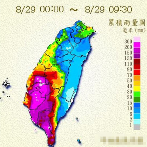 从今天凌晨到9点为止,台湾多县市范围内许多地方的累积降雨都已超过300毫米。(图片来自台媒)
