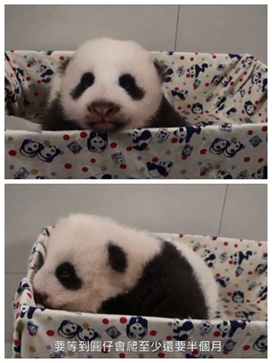 据台湾媒体报道,大陆赠台大熊猫所生幼崽“圆仔”生出来已经快满两个月了,目前还停在双眼迷蒙等阶段,台北动物园今天照例公布它最新影片,说明圆仔要会爬,至少还要再等半个月。