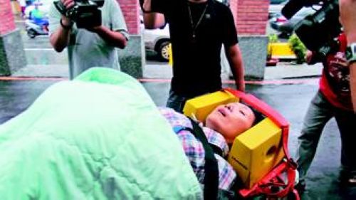 南回自强号列车撞土石堆出轨,李姓妇人腰椎受伤,须住院治疗。图片来源:台湾《联合报》