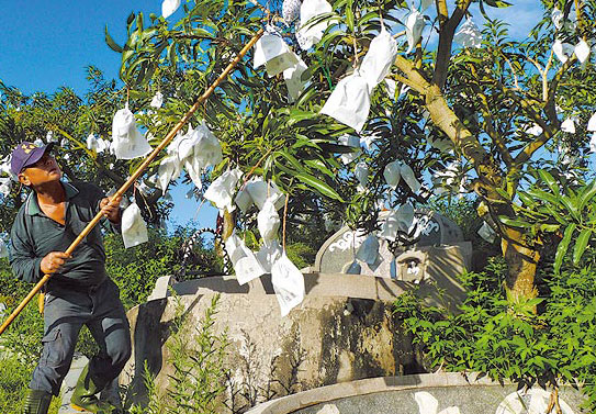 中国台湾网9月3日消息 据台湾媒体报道,台南市玉井区为台湾最知名芒果产地,台南市政府却放任果农窃占公墓用地种芒果。这些产自历史公墓的“尸肥芒果”以爱文芒果为主,年产逾200吨,产值逾560万元(新台币,下同),果树不仅种在墓间,还大剌剌种在坟头上,树根更穿地直通棺木、缠绕遗骨。爱吃芒果的民众昨听到可能加料的爱文芒果,多半心头发毛,表示“不敢吃了!”也有人说:“有什么好怕的?”