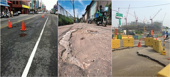 雨已经停了好几天,但各县市抱怨路不平、害轮胎破害人跌伤的案件频传。桃园县议员李家兴则说,桃园县马路不平的程度,已经出名,外县市坐车或开车的民众,只要发现车子开始巅簸就知道“桃园县到了”。