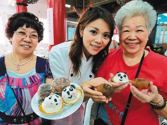 阿公阿嬷做大熊猫 “圆仔”月饼 舍不得吃。台湾《联合报》图