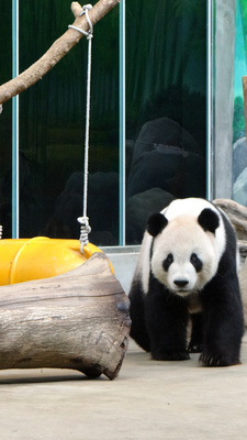 保育员也会在浮筒秋千里藏进“团团”喜欢的食物,让“团团”脑力激荡一下,多花点时间想办法把食物弄出来,因此偶尔会看到“团团”为了吃到浮筒中的零食,变身“功夫熊猫”。