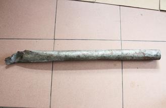 伤人的铁管,重约10公斤,长约90公分。图自台湾《联合报》