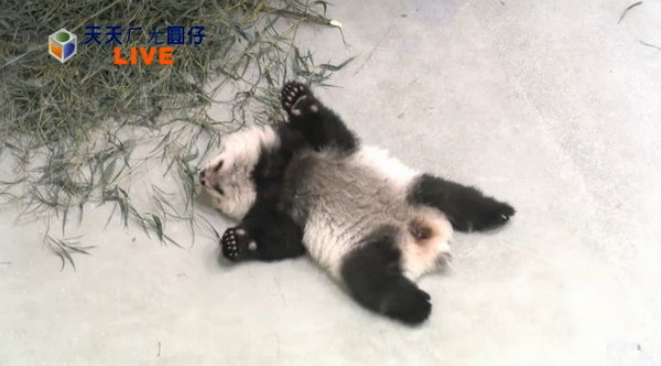 台北市立动物园直播熊猫“圆仔”画面。