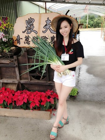 据台湾东森电视台网站报道,宜兰三星葱远近驰名,葱味香浓的青葱名列“三星四宝”之一。11月9日宜兰县三星有一家正式开幕、名为“农夫”的青葱体验农场,不但可提供游客下田体验拔葱、做葱油饼的乐趣,还有一位曾参加多项选美活动得名的“青葱正妹”,会亲自带领游客体验当一日葱农,这位亮丽吸睛的正妹就是农场主人的女儿,目前就读佛光大学传播系四年级的蒋羽捷。