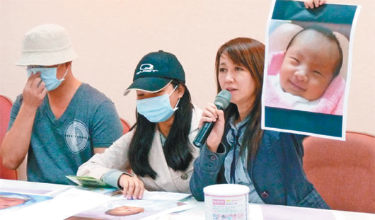 沈妈妈昨在北市议员简余晏陪同下控诉,女儿缃缃今年八月出生后,因她母乳量不足,购买这款奶粉给女儿喝,一天约喝八次奶。但缃缃九月开始发烧,十月十五日发烧抽搐,送国泰医院急救,虽一度退烧,但隔天凌晨再因呼吸急促病危,转马偕医院急救。