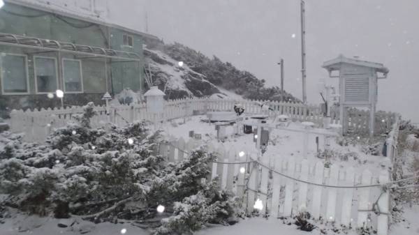 根据玉山北峰气象站资料,玉山北峰积雪已经达到6公分。(图来自台媒)