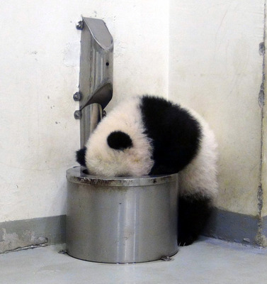 园方说,自从“圆仔”的攀爬能力变好后,在室内活动时,她就喜欢往缝里钻,或爬进饮水盆里,知道饮水盆的构造原理后,便不难理解为什么“圆仔”喜欢坐在里面,只不过越来越大的“圆仔”,就快要塞不进去了。