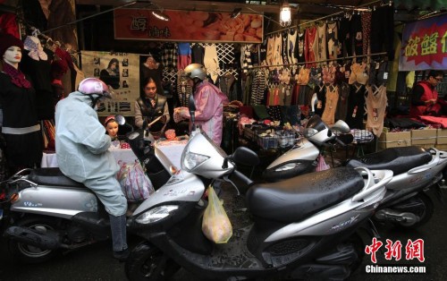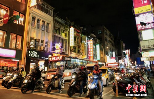 在台湾,摩托车被称为“机车”,不少家庭都是3、4辆,台湾男女老少大多数会骑摩托车。大街小巷,排满了摩托车,密度之高居全球第一。摩托车阵已经成为台湾城镇的一道著名景观,台湾享有“摩托车背上的宝岛”之美誉。图为摩托车阵穿梭在台北街头。中新社发 赵隽 摄