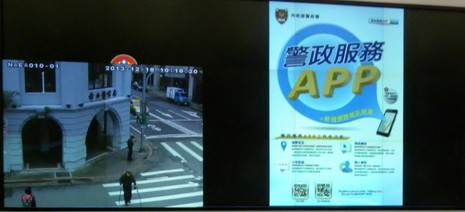 台北市警局110报案勤务指挥中心内,警政人员今日焦急等待,他们为了演示“警政服务App”新增的“云端视讯报案功能”,让假扮报案人的同事使用手机在台北市街头拨打电话报案,利用实时视频监看系统,观看视讯大屏幕中即时收到的手机端传输画面,从画面上看去,“报案人”周遭情况一清二楚,只要民众不离开所在位置,警政人员就可详细知悉当时状况,这无疑将提供民众极大的安全感。