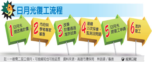 陈金德说,停工是没期限的,何时复工以日月光的动作而定。若马上提出改善计划,审查核可后进行试车,通过连续15次的采样、监测没问题,日月光提出复工申请,即可同意复工,一般时程为二至三个月,“日月光若做得好,可以更快复工”。
