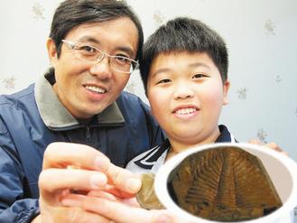 华顺发(左)认为学生张其昌(右)找到的化石应该是三叶虫,但科博馆认为不可能,因为三叶虫活动的年代比台湾岛诞生早数亿年。