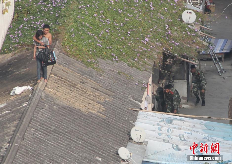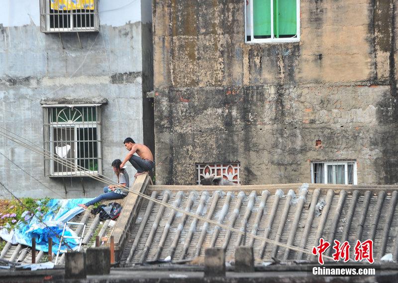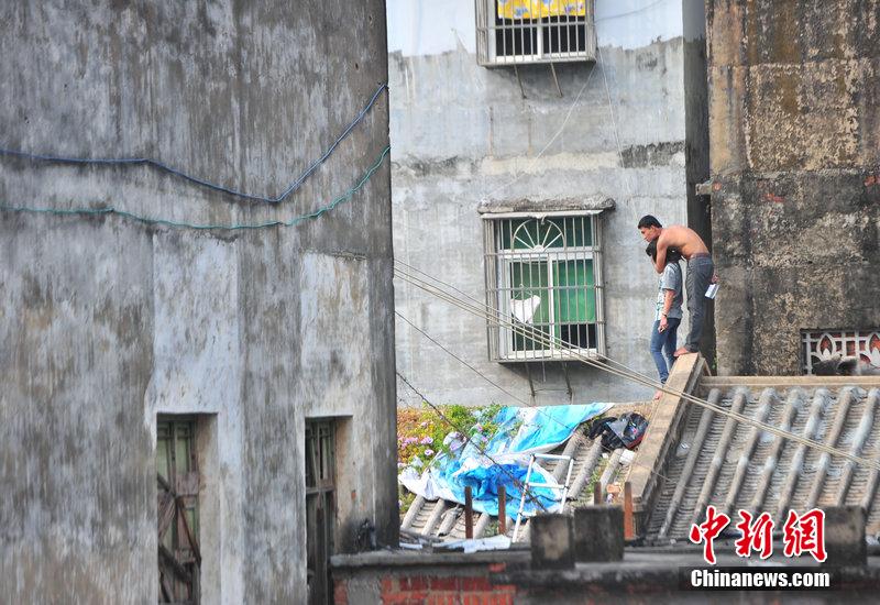 1月20日,海南省三亚市解放二路发生一起劫持人质案件。警方经过近5个小时的周旋,制服劫持人质的持刀男子,成功解救被劫人质,人质安然无恙。当日上午,林某平(男,30岁,海南万宁人,已婚,有三名子女)因感情纠纷,持一把菜刀将其女友(李某,24岁,海南万宁人)挟持到屋顶。中新社发 周君 摄