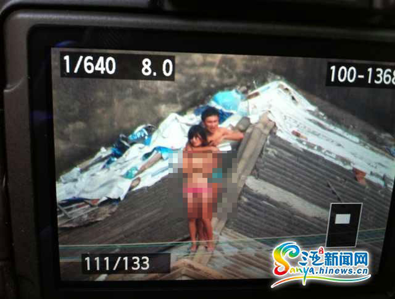 1月20日,位于三亚市建设街附近有一名半裸男子,手拿菜刀挟持了一名半裸女子。目前,该名男子已被警方控制,具体挟持原因正在进一步调查之中。图为男子向被挟持的女人质喂水。邓松 摄 图片来源:三亚新闻网
