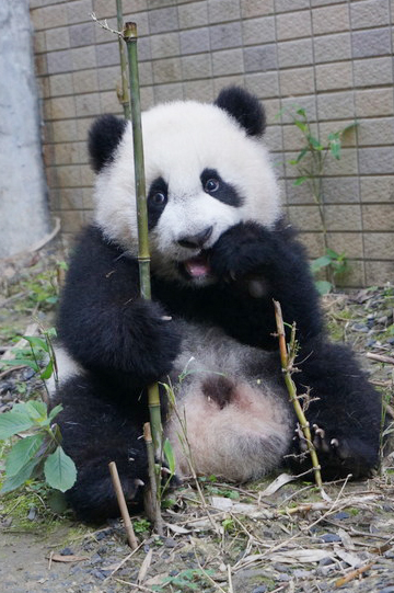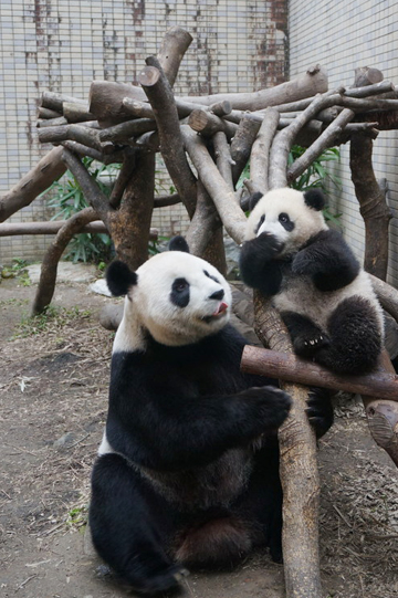 大猫熊宝宝“圆仔”跟妈妈一起到户外走春。来源:台北市动物园