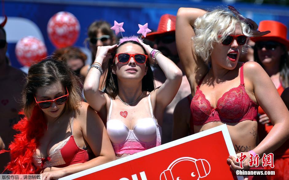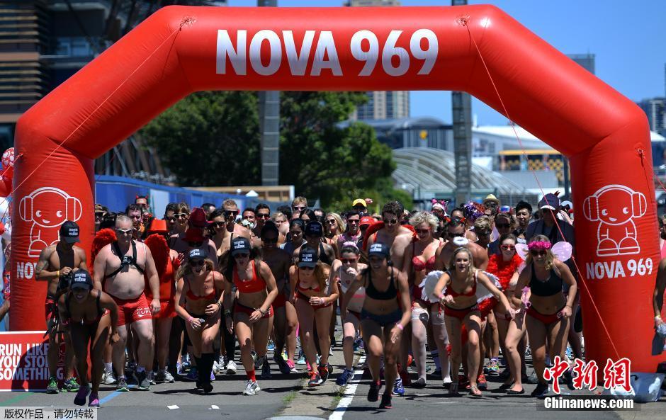 当地时间2014年2月9日,澳大利亚悉尼,数百人参加内衣赛跑,为澳大利亚儿童肿瘤基金募集善款。这是世界上有组织的最大规模内衣赛跑。