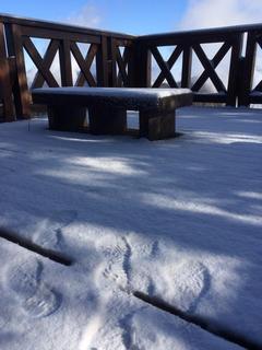 阿里山20日凌晨12时降雪逾40分钟,积雪达0.8公分,早上8时仍可见积雪,让游客相当兴奋。图/台湾联合新闻网