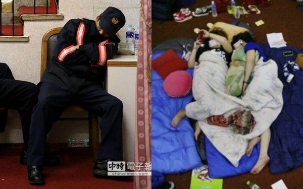 反服贸学生占领“立法院”行动持续进行,学生在议场内外过夜,前来执行勤务的警察也只能跟着打地铺;对比学生有睡袋、毛毯等各界捐赠的衣物,警察只能用外套裹身,让不少警眷感到不舍。(本网合成图)