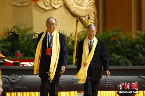 4月2日上午,中国国民党中评委主席团主席徐立德(前)为黄帝敬献头炷香