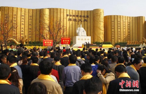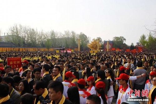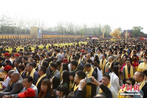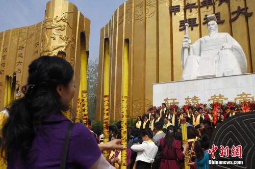 4月2日上午,甲午年黄帝故里拜祖大典在新郑市黄帝故里举行,海内外华人拜轩辕