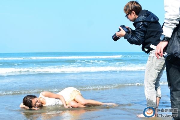 台湾豆花妹躺10度海水,拍摄全湿身微性感美照。(台媒图)