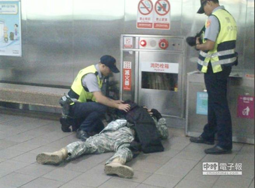 据台湾《中国时报》网站即时消息,26日下午4时许,一名身穿迷彩装的蓝姓男子,手持一把电动空气长枪出现在捷运(地铁)台北车站,引起过往乘客侧目与骚动,当场遭驻守警察以迅雷不及掩耳速度压制逮捕。
