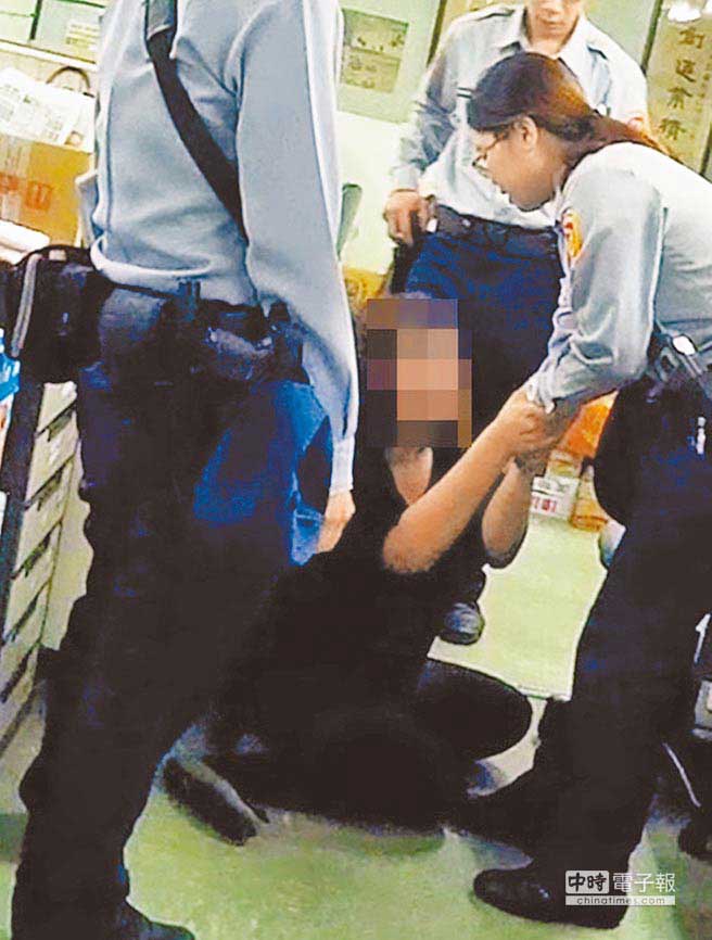 陈姓妇人偷文具,警察前跪求原谅。(图片来源:台湾中时电子报)