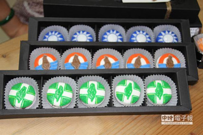 据台湾“中时电子报”报道,台湾年底选战倒数4天,政坛陷入一片选举狂热中,台南市南区马卡龙烘培高手王淑玲将这波选举热潮发想成点子再出招,25日设计制作一系列党徽马卡龙,在网站上意外爆红,有蓝、绿阵营的党籍候选人向她索取作为文宣素材。
