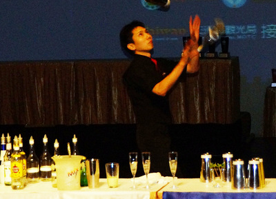 中新网11月30日电 据台湾“中央社”报道,第20届金爵奖国际调酒大赛今天在台湾高雄市开幕,上百名花式调酒选手表演抛瓶秀助阵,场面壮观。