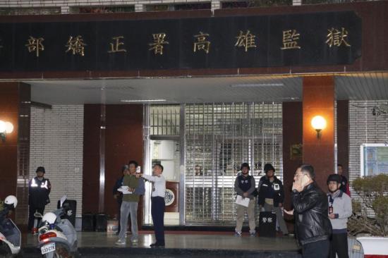 2月11日,台湾高雄大寮监狱发生挟持事件,6名受刑人挟持管理员,典狱长陈世志自愿当人质,把谈判的副典狱长换出来。董俊志 摄 图片来源:台湾“中央社”