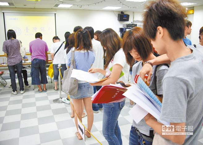 台湾“教育部”及学者研究发现,私立大学学生贷款人数是公立大学的4倍,学校学贷比例也约1倍。图为开学前银行就学贷款申办处学生排队等候情形。(台媒资料照片)