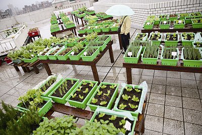 台北市长柯文哲上任后致力推动“田园城市”农业政策,经大楼管委会同意后,在顶楼闲置空间种植有机蔬菜,希望上班族能在闲暇之余,除“吃出健康”外,也藉由绿色植物,让压力得以释放。
