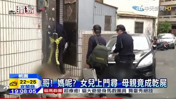 52岁儿子伴76岁老母亲干尸1个月,姐弟探视发现人伦悲剧。(图片翻摄自台湾中天电视)