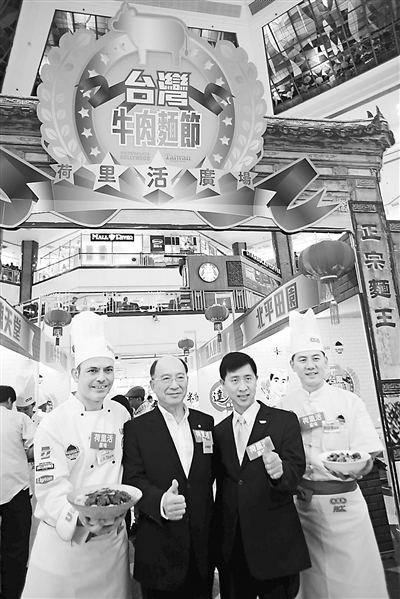 近日,为庆祝“台北国际牛肉面节”10周年,台湾观光局一连3天在香港荷里活广场举行“台湾牛肉面节”,向香港市民推介台湾最美味的得奖牛肉面。图为活动现场。 洪少葵摄(中新社发)
