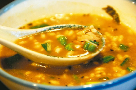 传统的擂茶有米香、萝卜干、豆子等,料多味美。图自台湾《联合报》