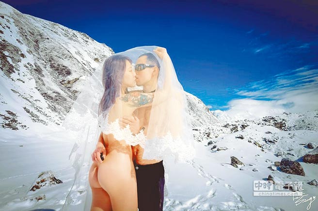 台湾知名美女部落客“柳丧彪”,和老公跋涉至海拔5000多米的尼泊尔格吉欧里(Gokyo Ri)举行高山婚礼、拍摄全裸婚纱,没想到遇到大地震,身上挂彩受伤。(图片来源:台湾《中国时报》)
