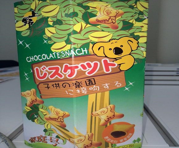 该报道称,虽然色调相同,外包装的形状也差不多,然而山寨版小熊饼包装上的日文根本没有任何实际意义。改包装不仅将日文的“bisuketto”(饼干),然而却写成了“jisuketsuto”,英文部分则Chocolate Snach(巧克力抢夺)。包装上更印有一行日文,读作“Kodomo no rakuen ni seppun suru”,意思是“在儿童天堂亲吻”。