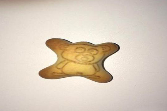 忽略中式日语部分,看看饼干的样子。网友认为这根本是广告不实,因为饼干和包装上的样子完全不一样!(图片取自日本网站 Rocket News 24)
