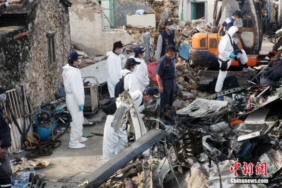 2014年7月24日,台湾澎湖湖西乡西溪村空难现场,搜寻清理工作正在进行。台湾复兴航空一家客机23日傍晚从高雄飞澎湖马公机场时,重飞失败而在当地失事,造成机上58位乘客和机组人员目前有48人死10人伤。 中新社发 黄少华 摄